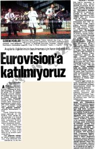 1979 Eurovision Şarkı Yarışması’na Türkiye ile birlikte 20 ülke katılıyordu. Türkiye sahneye 11. Sırada çıkacaktı. Ama hesapta olmayan bir şey oldu. Arap ülkeleri yarışmanın Kudüs’te yapılacağından, Türkiye’nin yaşadığı ekonomik kriz ve yaşanan petrol krizi sonucu bunu baskı unsuru kullanarak Ecevit hükümetine Türkiye’nin yarışmaya katılmaması için protesto verildi. Arap ülkelerinin baskısından dolayı Ecevit hükümeti Türkiye Cumhuriyeti Dışişleri Bakanlığı’nın uyarısıyla yarışmaya katılmama kararı aldı. TRT finale 10 gün kala 4 Mart tarihinde yarışmadan çekildiğini bildirdi.