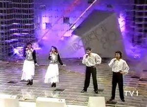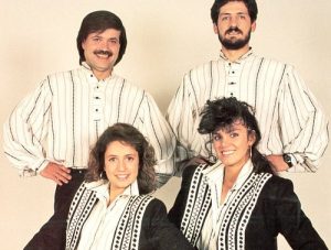 Grup Pan zafer sevincini kutluyor. TV’de 7 20 Mart 1989 (Fotoğraf: @eurovision_retro)