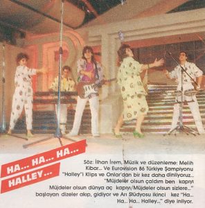 1986 yılında Klips ve Onlar adlı genç ve tanınmayan müzisyenler tarafından seslendirilen Halley şarkısının söz yazarı İlhan İREM’dir. Rahmetli Melih KİBAR tarafından bestelenen şarkı, Halley kuyruklu yıldızı ile alakalıdır. Halley kuyruklu yıldızının dünyaya son yakın geçişi olan 1986 yılında konu dünya çapında ilgi uyandırmıştır ki bu konuya ilişkin bir şarkı yazmakta ancak İlhan İREM dehasında bir sanatçıya yakışır.Barış ve sevgi üzerine onlarca söz yazan değerli sanatçının yazdığı ve Melih KİBAR tarafından bestelenen bu güzel eser, yarışmada 53 puanla 9. olur.