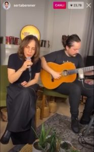 Sertab Erener en son konserini 7 Mart’tta Ankara’da verdi. 1 aydır evde olduklarını söyleyen sanatçı evde kalmanın enstrüman çalışmak için büyük bir fırsat olduğunu söyledi. Beraber çalıştıkları, orkestrasında keman çalan müzisyen Deniz İbrahimoğlu ile piyano çalıştıklarını ve bir dahaki sefere piyano çalıp şarkı söyleyeceğinin müjdesini de verdi.
