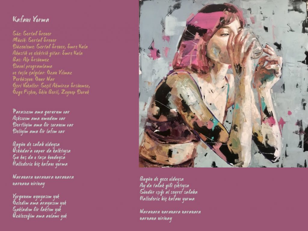 Erener’in albüm kapağındaki yağlı boya resmini Dokuz Eylül Üniversitesi Güzel Sanatlar Fakültesi mezunu Dicle Çiftçi yaptı.