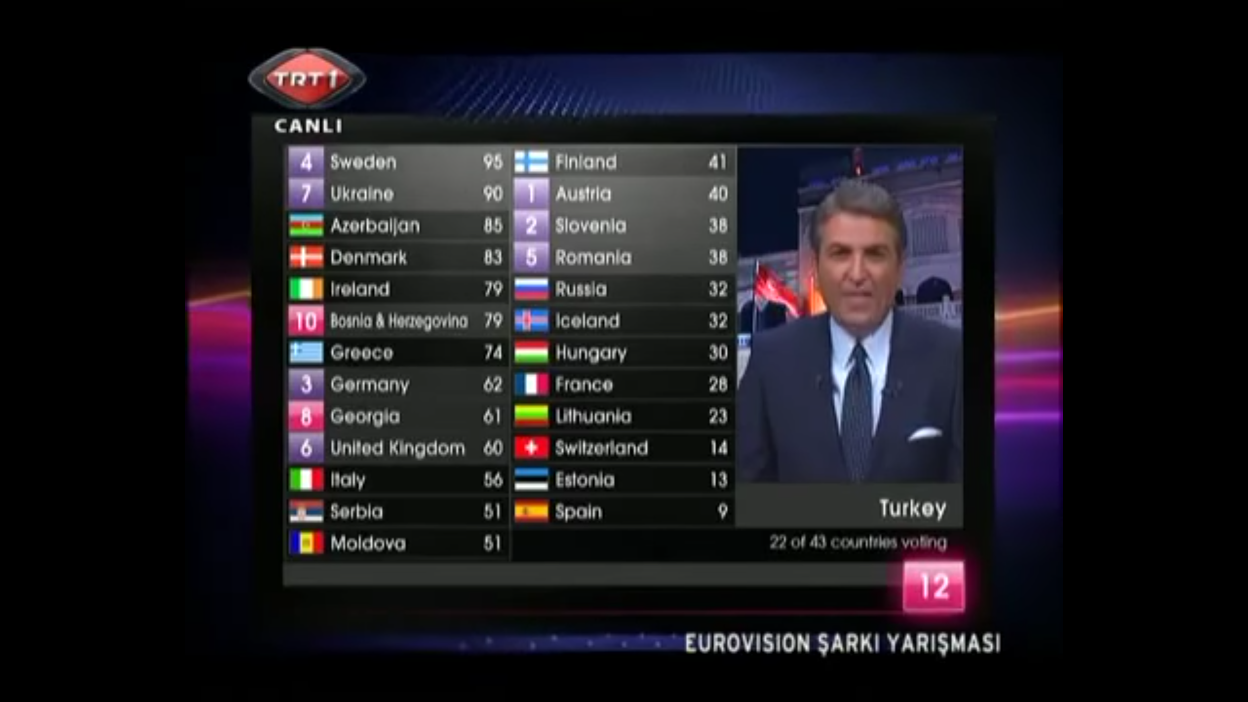 Sizler için, bir puanın bile önemli olduğu Eurovision yarışmasında ülkemizin Eurovision’a katıldığı 1975-2012 yılları arası birincilerine kaçar puanlar verdiğini inceledik. Ülkemiz bazen siyasi oylar verse de adil olmaya çalıştı. Yunanistan’a 2005 yılında 12 puan verdiğinde de tüm salon tarafından alkışlandı. Birkaç şaşırtıcı durumla karşılaştık: Bazı şampiyonlar Türkiye tarafından da desteklendi, bazıları ise Türkiye’den hiç puan alamadı.